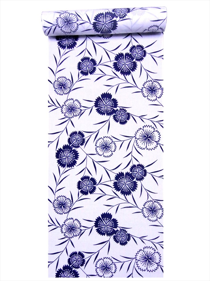 浴衣反物 NO.213 白地 ナデシコ柄 片面染め/耳あり