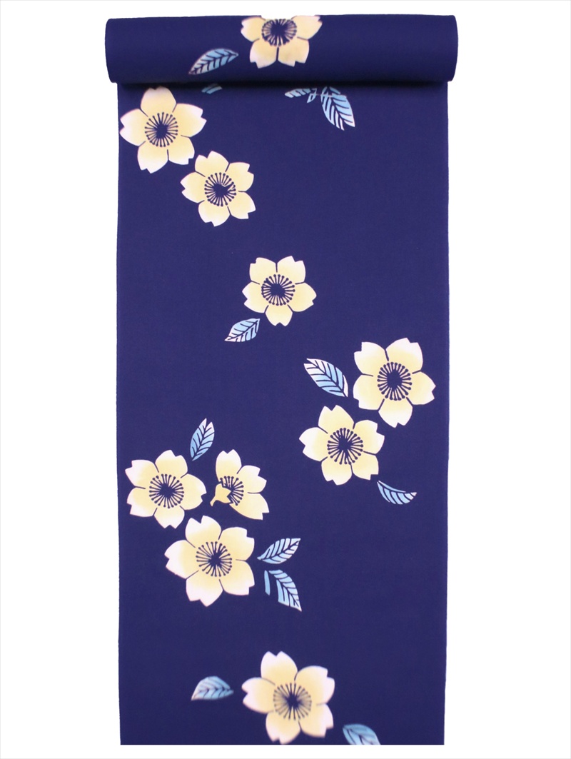 浴衣 反物 NO.223 濃紺地・サクラ柄・注染染め/耳あり