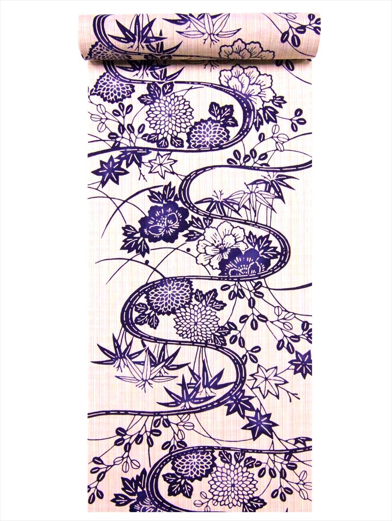 ゆかた・生地・未仕立て品・綿100%・長さ12m・巾39cm・注染(手染め・両面染め)・変り織り(拡大写真参照・綿紬)・耳有り・浜松産。