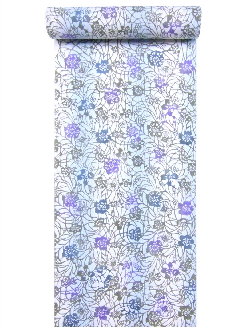 浴衣 反物 No.247 うす水色地 桜・菊柄 両面染め/耳あり