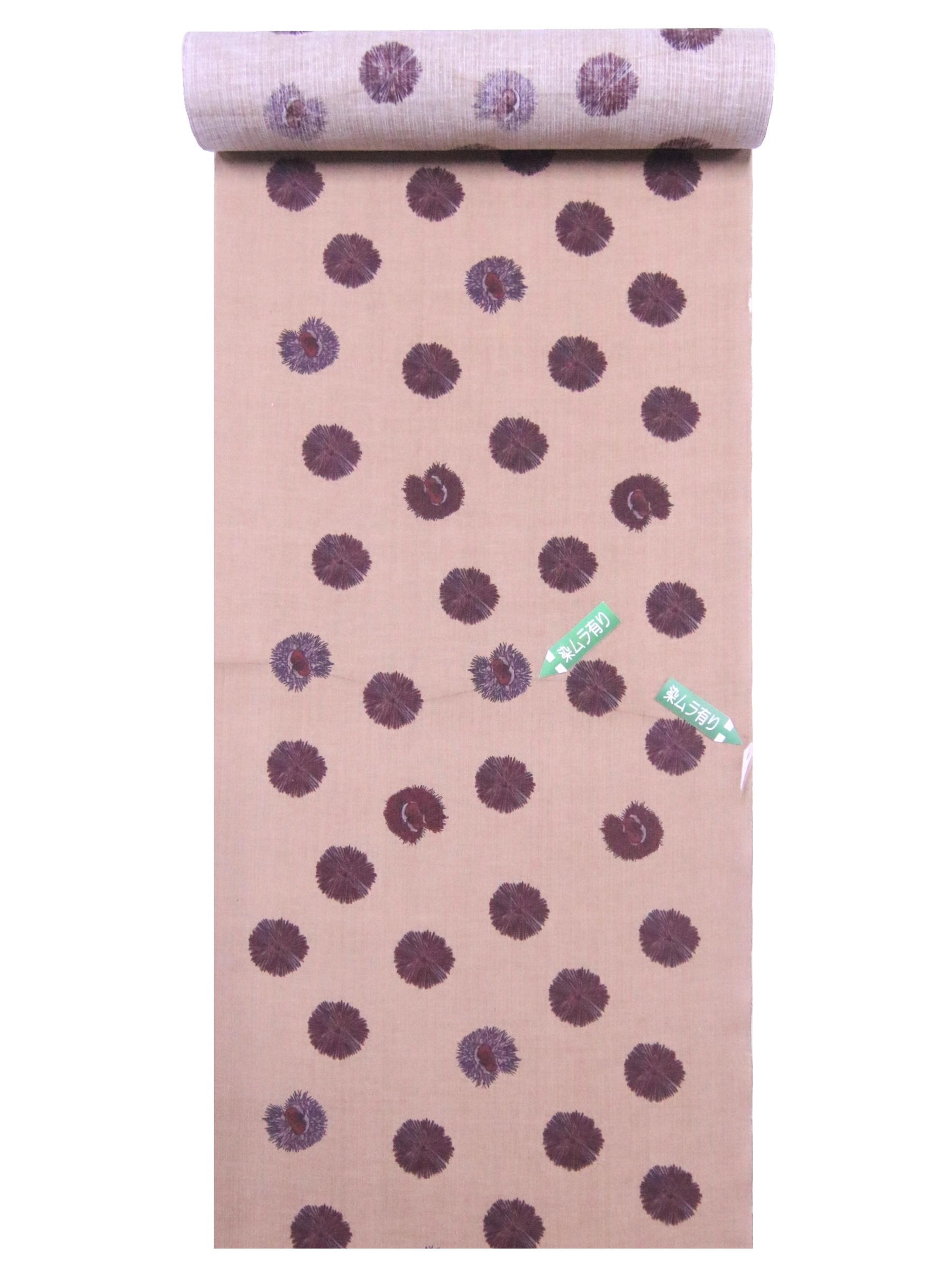 浴衣 反物 No.249 クリ柄・うす茶色地【訳有り】