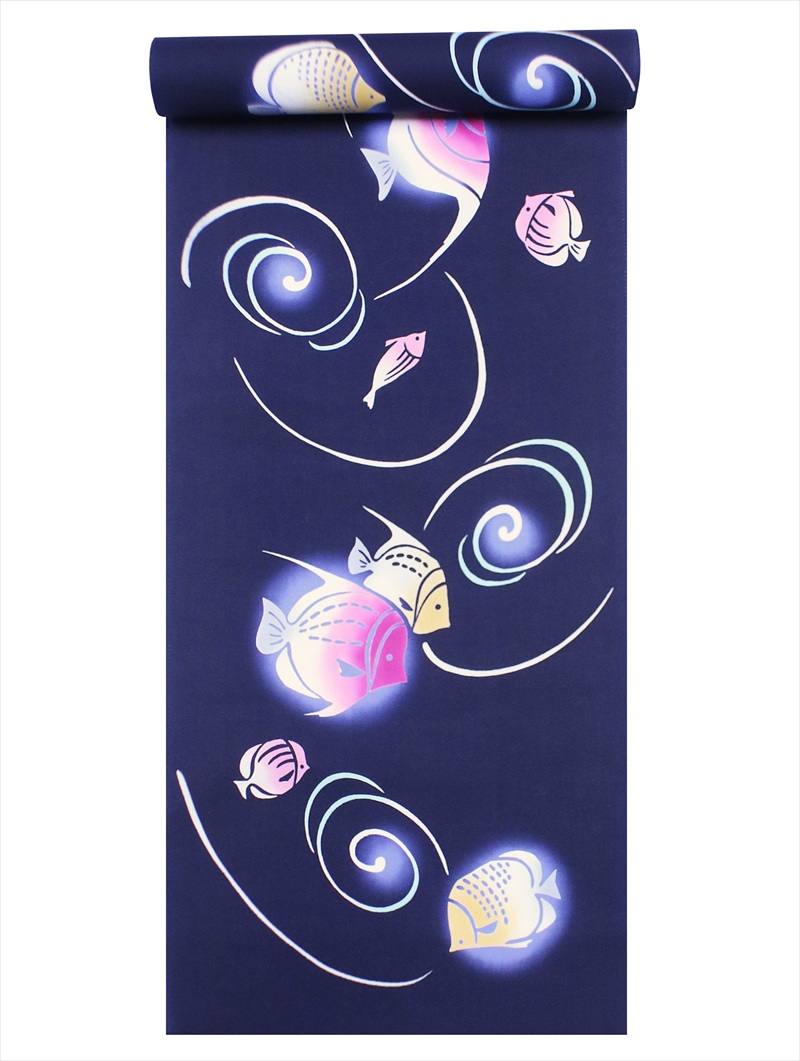 浴衣 反物 NO.258 濃紺地・熱帯魚柄【訳アリ】