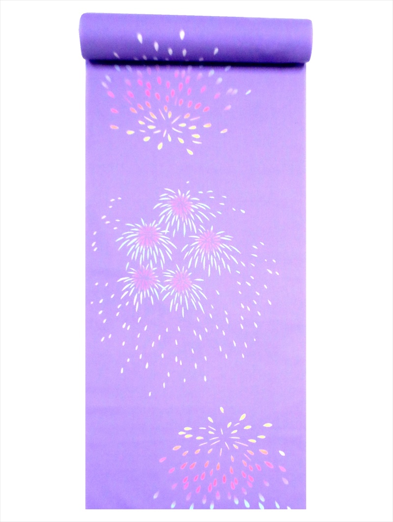 浴衣 反物 NO.283 うす紫地・ハナビ柄・注染染め/耳あり