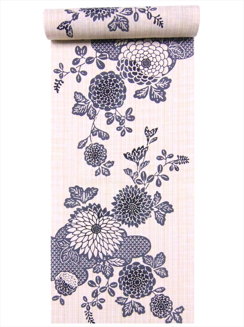 浴衣 反物 NO.318 ベージュ地・キク柄・注染染め/耳あり