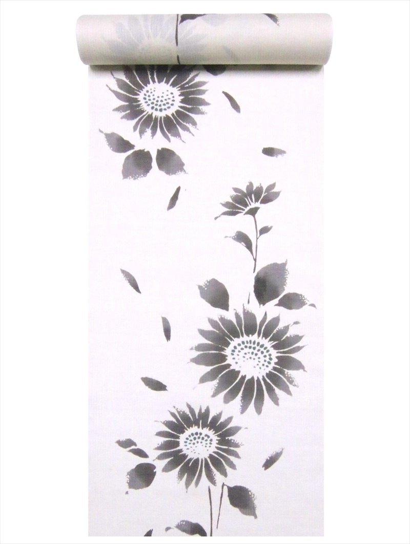 浴衣 反物 耳有り No.33 オフホワイト地・ヒマワリ柄