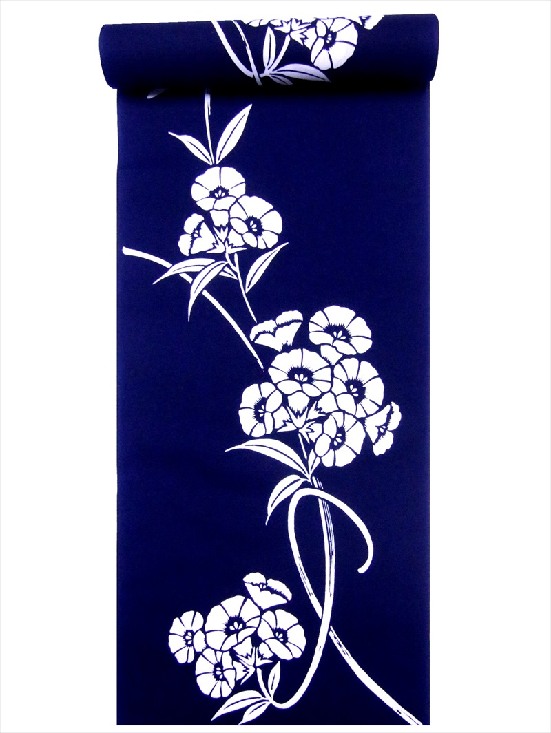 浴衣 反物 NO.335 濃紺地・ヒルガオ柄・注染染め/耳あり