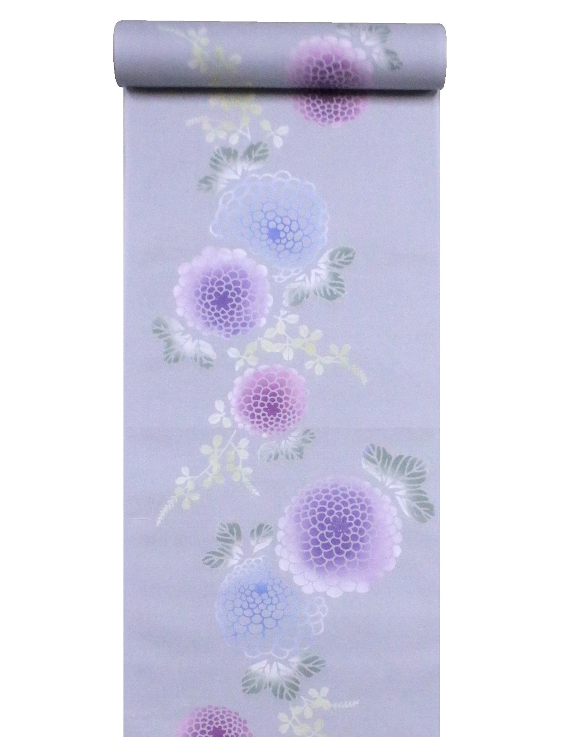 浴衣 反物 NO.350 うすグレー地・キク柄・注染染め/耳あり