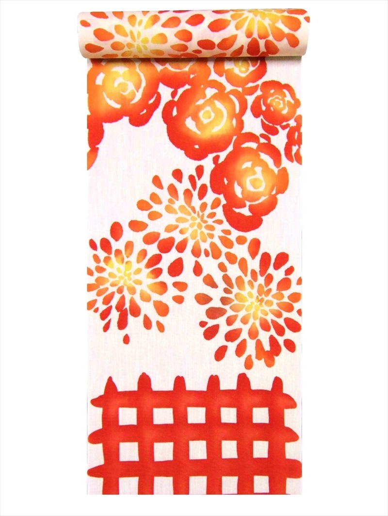 浴衣 反物 ツモリチサト No.370 バラ・花火・格子柄・クリーム地