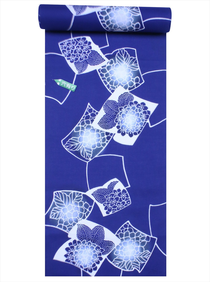 浴衣 反物 NO.408 紺地・アジサイ柄【訳アリ】
