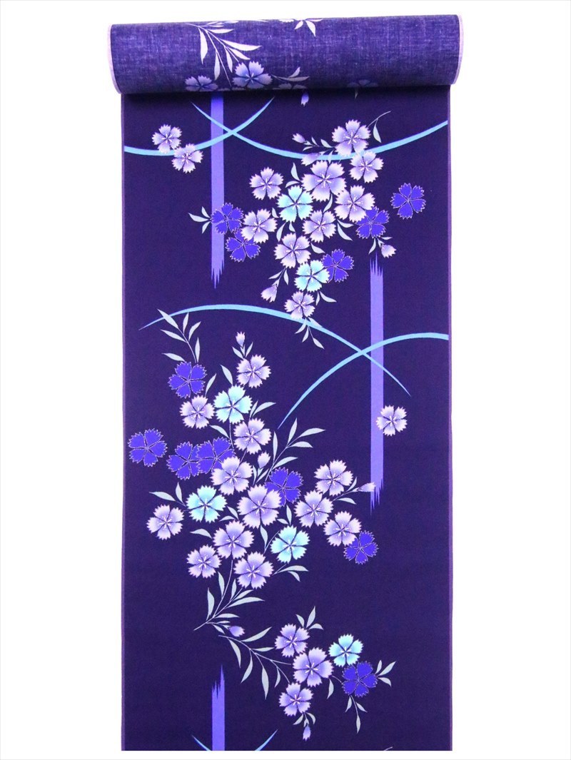 浴衣反物 教材用 トールサイズ 1反12m+別生地3m 濃紺地 ナデシコ柄 No.433 片面染め/耳ナシ