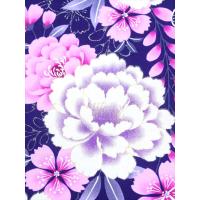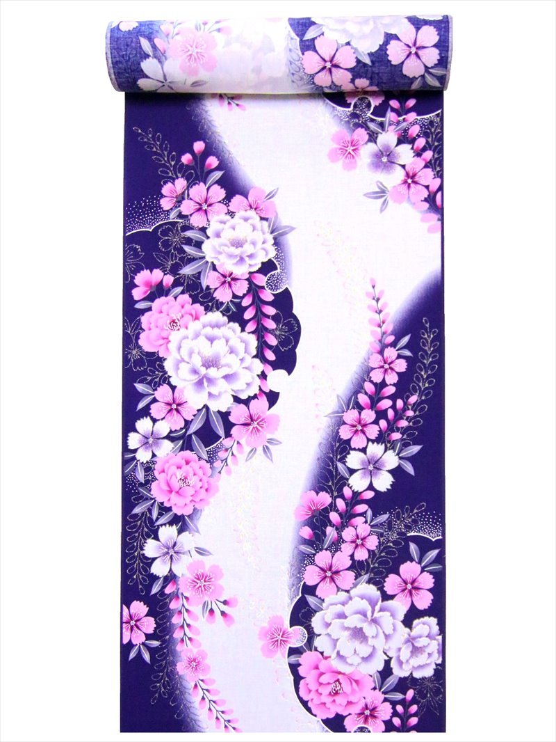 浴衣 反物 トールサイズ 1反12m+別生地3m 紫紺地 牡丹・雪輪柄 No.446 片面染め/耳ナシ