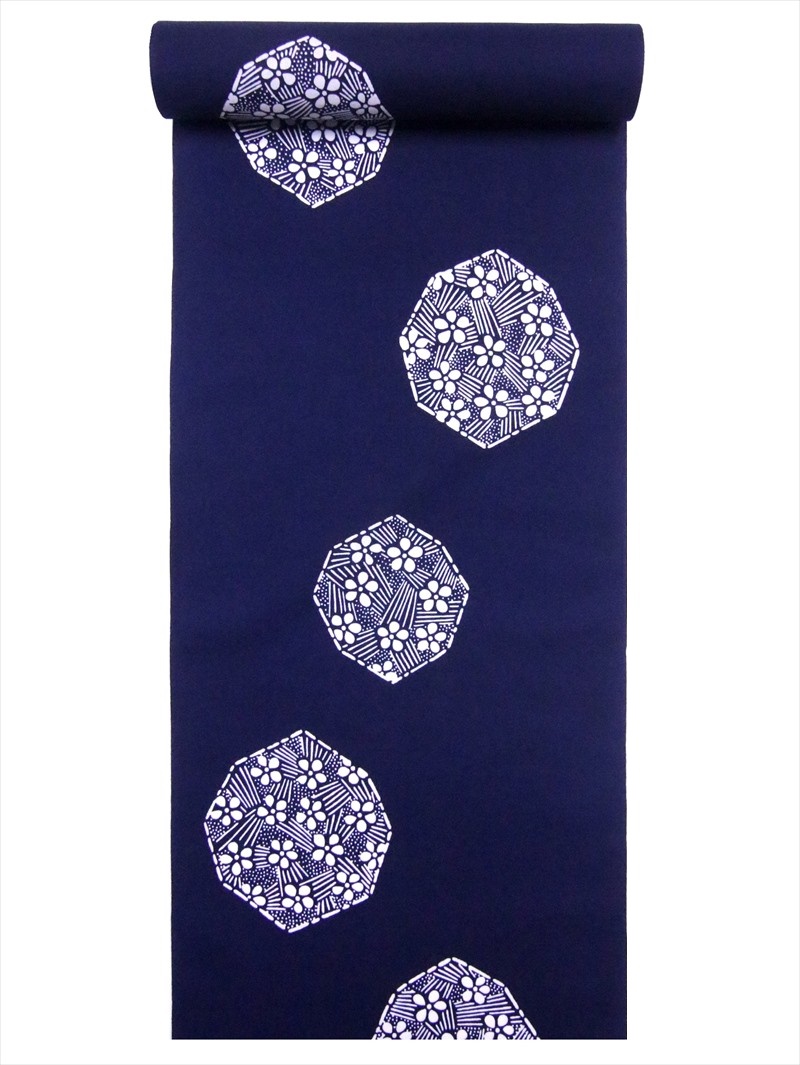ゆかた・生地・未仕立て品・綿100%・長さ12m・巾38cm・注染(手染め・両面染め)・平織り・耳有り・浜松産。