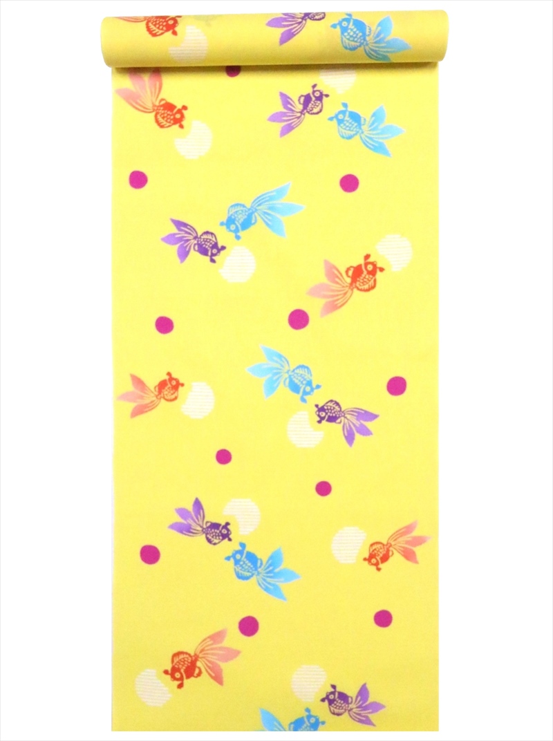 子供 浴衣 反物 3.8m No.714 黄色地・金魚柄・注染染め