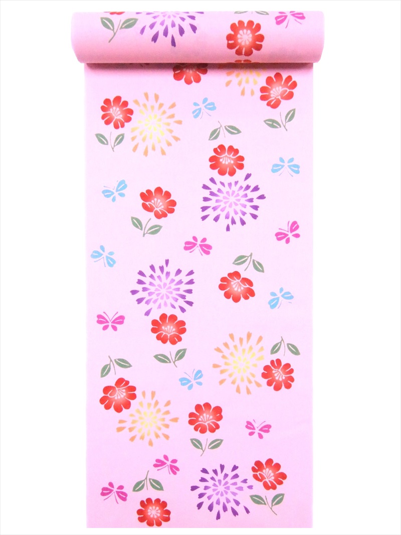子供 浴衣 反物 3.8m No.737 うすピンク地・芙蓉・花火柄・注染染め