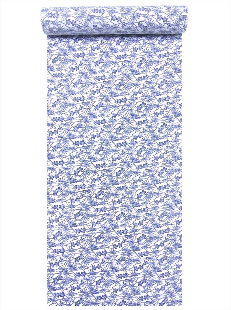 浴衣 反物 耳有り No.79 梅・笹・松皮菱柄・白地