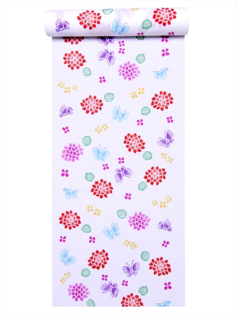 子供 浴衣 反物 (7.6m) No.824 白地・アジサイ柄・5,6才用