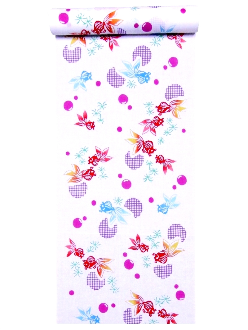 子供 浴衣 反物 (12m) No.901k 白地・キンギョ柄・注染染め