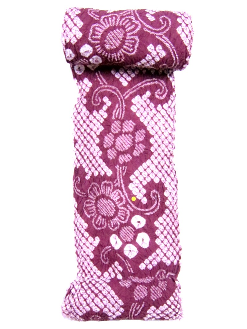 地色は紫がかった赤茶地です。生地…日本・絞り加工…カンボジア・染め…日本。