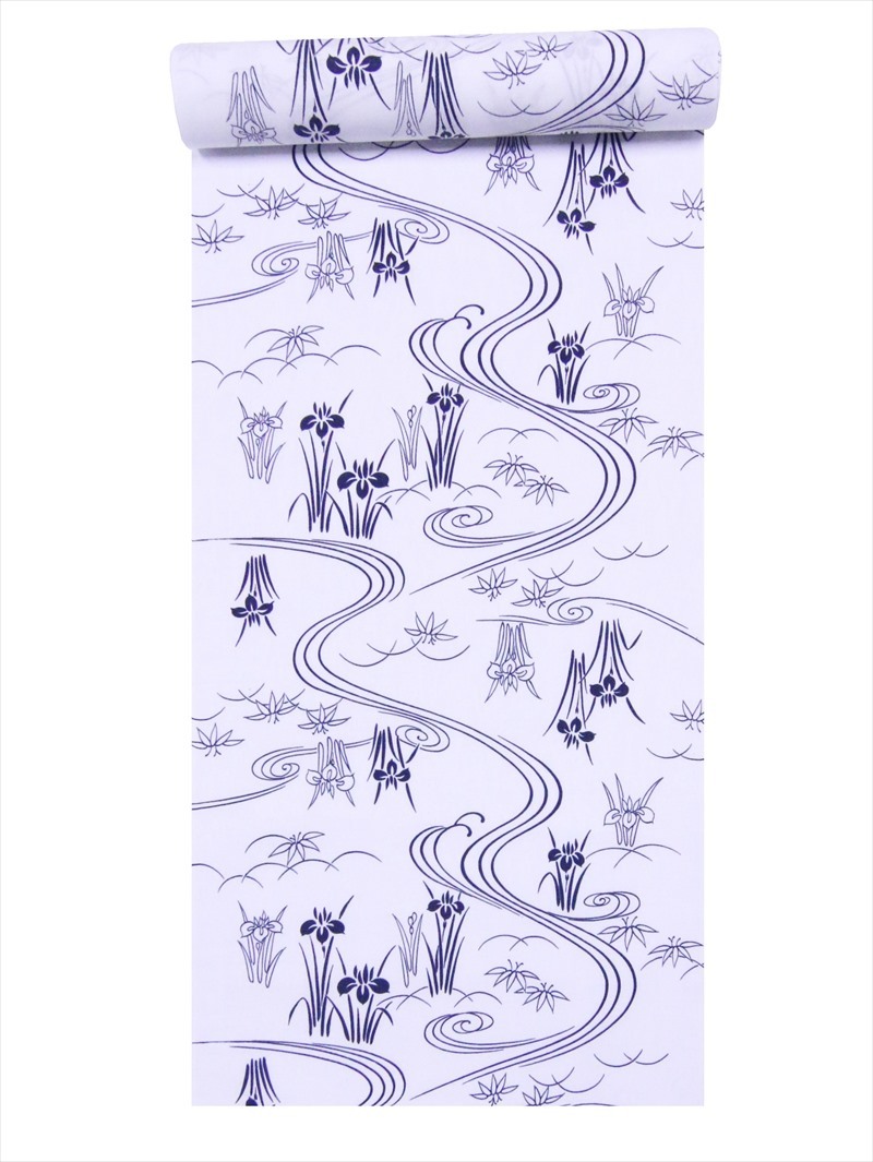 浴衣 反物 No.109 白地 アヤメ柄 片面染め/耳あり