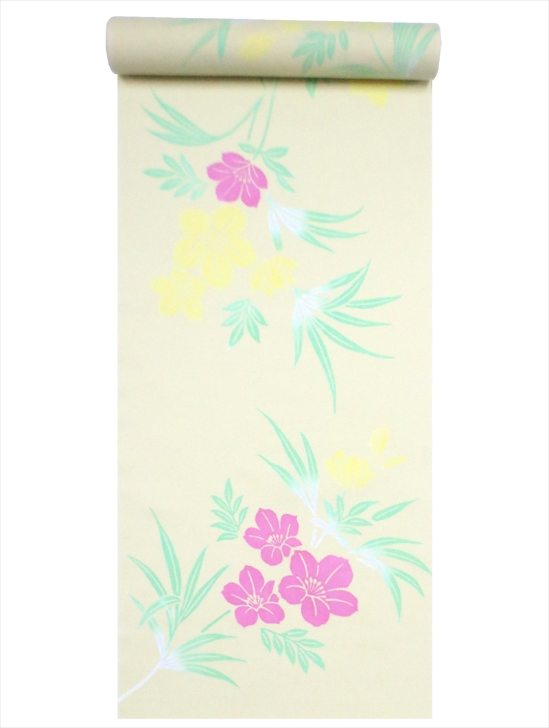 浴衣 反物 NO.188 クリーム地・ツツジ柄・注染染め/耳あり
