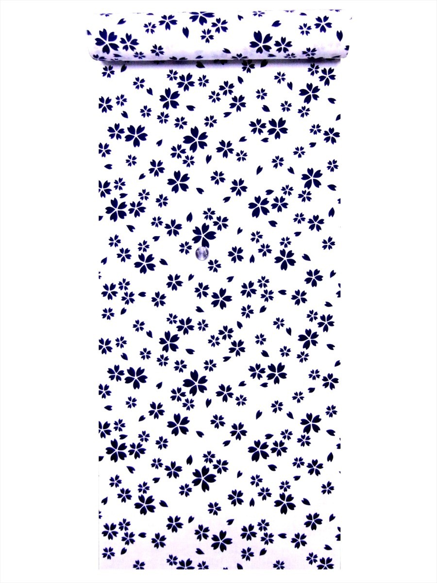 浴衣反物 NO.21 白地 サクラ柄 片面染め/耳あり