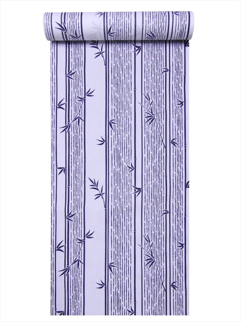 浴衣 反物 No.304 白地 竹笹柄 片面染め/耳あり