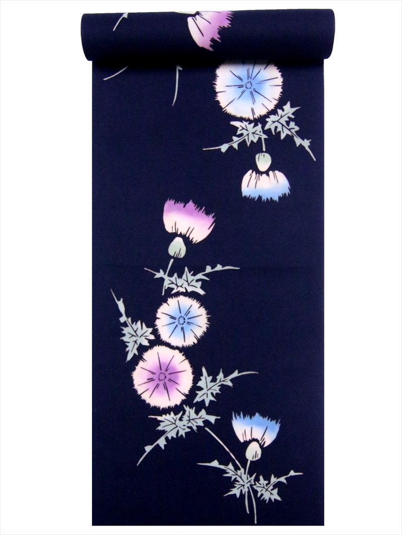 浴衣 反物 NO.412 黒地・アザミ柄・注染染め/耳あり