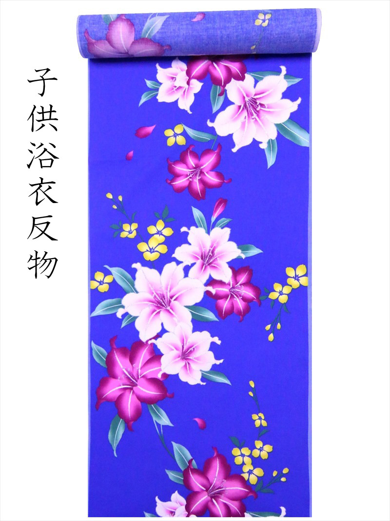 子供 浴衣 反物 5.7m No.812 ブルー地・ユリ柄