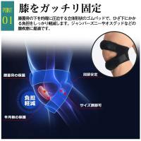 ●2枚の圧迫パッドがピンポイントで圧迫し上下からしっかり挟み込み固定し、ヒザ関節のブレを抑制、ひざにかかる負担をしっかり軽減します。ジャンバーズニーやオスグッドなどの膝疾患に最適です。