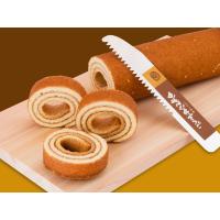 小麦粉や卵を主な原料として混ぜた生地を板状に焼き、温かいうちに巻いてロール状にしたお菓子です。付属の”のこぎり”で切って食べれば「せんべい」として、袋からだして半日おけば「カステラ風のお菓子」として、切って楽しむ二通りの味、かすてらせんべい。下松伝統の銘菓です。