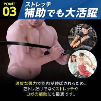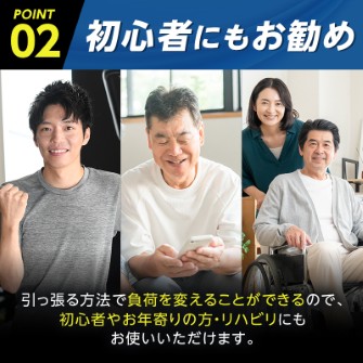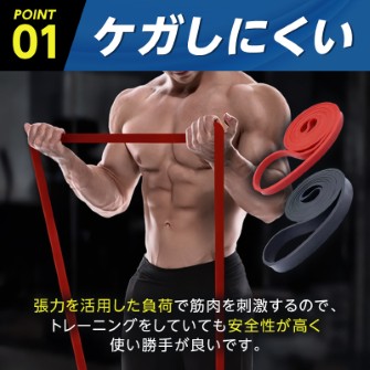 ゴムの張力を活かし、軽めの運動から本格筋トレまで対応。