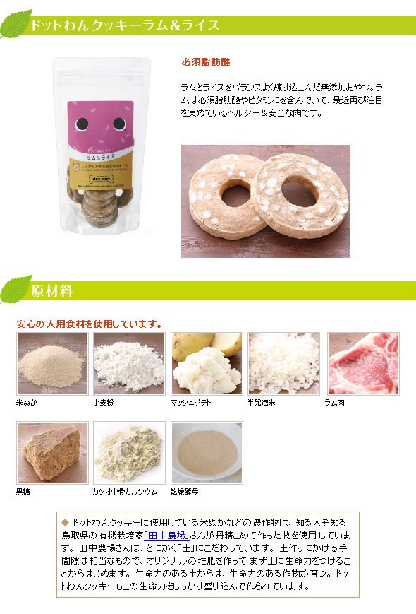 商品説明:ドットわんクッキー ラム&ライス【無添加・手作り犬おやつ】【手作り食・トッピング】【おやつ】