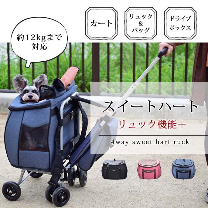 ペットカート スイートハート リュックタイプ ドライローズ/ブラック/デニム 12kgまで 小型〜中型犬用