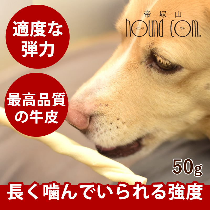 最高品質のローハイドは肉厚でしなやかな為、長時間楽しめるガムです。