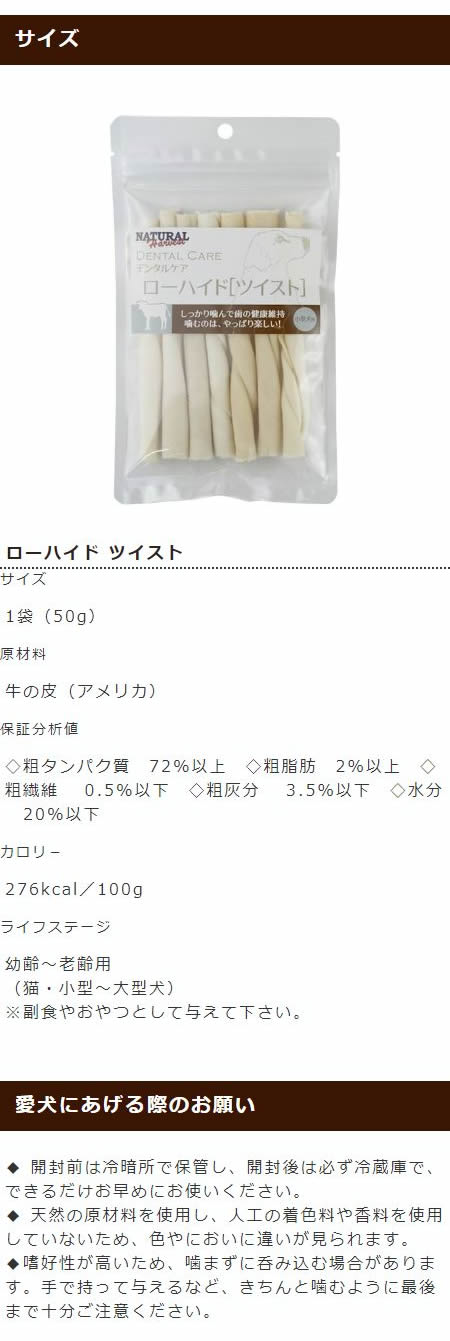 ナチュラルハーベスト デンタルローハイド ツイスト 50g 無添加 おやつ