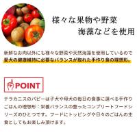 原材料【2025年2月以降順次、新レシピに変更となります】鶏の胃袋(28%)、鶏の心臓(17%)、カボチャ(14%)、キビ、リンゴ、トマト、鶏の赤身肉(6%)、鶏のレバー(4%)、亜麻仁油、カボチャの種子粉(1%)、オイスターシェル*、ビール酵母*、チャイブ*、カモミール*(0.2%)、珪藻土*、ローズヒップ*、モンモリロナイトクレイ*、ビーポーレン*、海藻*、ビタミンA、ビタミンD3、銅、ヨウ素、亜鉛、マンガン、鉄