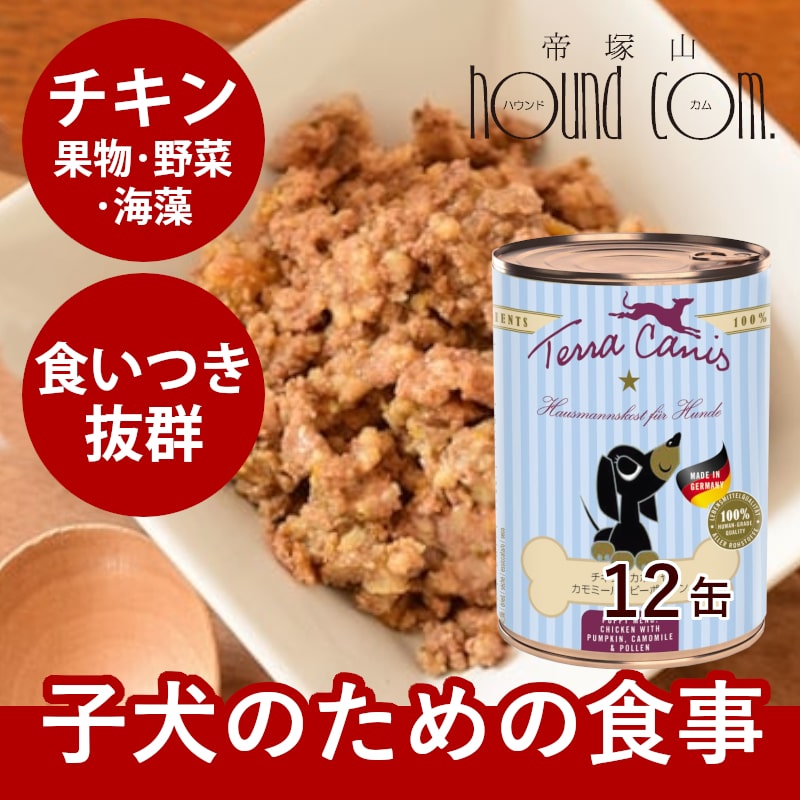 原材料【2025年2月以降順次、新レシピに変更となります】鶏の胃袋(28%)、鶏の心臓(17%)、カボチャ(14%)、キビ、リンゴ、トマト、鶏の赤身肉(6%)、鶏のレバー(4%)、亜麻仁油、カボチャの種子粉(1%)、オイスターシェル*、ビール酵母*、チャイブ*、カモミール*(0.2%)、珪藻土*、ローズヒップ*、モンモリロナイトクレイ*、ビーポーレン*、海藻*、ビタミンA、ビタミンD3、銅、ヨウ素、亜鉛、マンガン、鉄