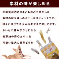 犬 おやつ 無添加 茨城県産のさつまいものみを使用した素材の味を楽しめる干し芋スティックです。ほどよい固さで子犬から老犬まで楽しめます♪おいもの甘みがクセになる無添加の安心おやつを可愛い愛犬に是非どうぞ。