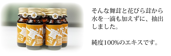 栄養豊富な舞茸と花びら茸エキスから水を一滴も加えず、茸のみから抽出した100%エキスです。