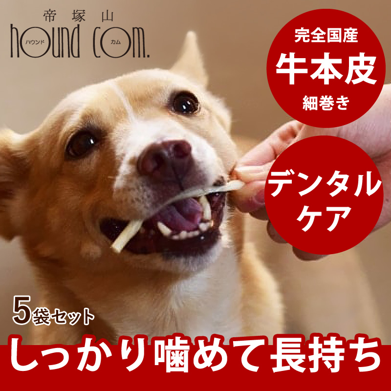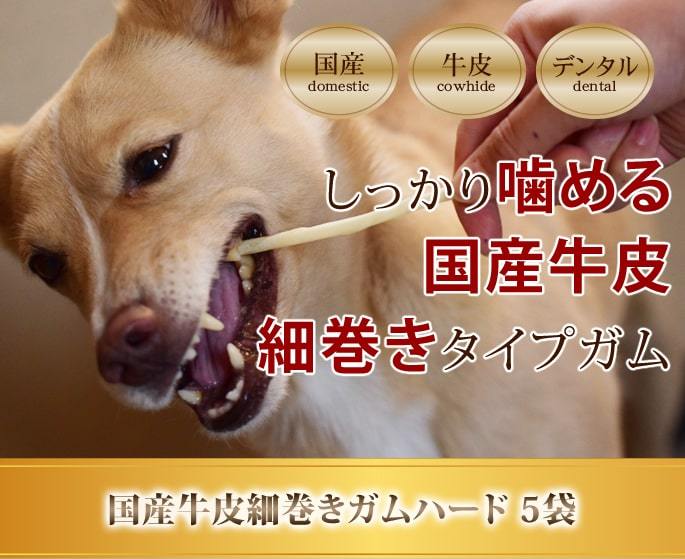 愛犬用ガム 噛める デンタルおやつ 長持ち 小型犬 中型犬 犬のおやつ 国産牛皮細巻きガムハード 5袋セット