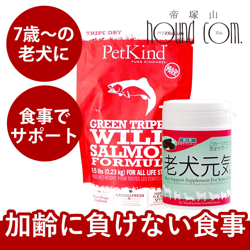 ラムトライプ,サーモン,エンドウ,ピースターチ(エンドウ澱粉),乾燥ターキー,ピープロテイン(エンドウタンパク質),キャノーラオイル(ローズマリー抽出物で保存),フラックスシード,ナチュラルフレーバー(鶏レバーオイル),キノア,カボチャ,ホウレンソウ,ニンジン,ブロッコリー,クランベリー,リンゴ,ブルーベリー,バナナ,炭酸カルシウム,塩化ナトリウム,第二リン酸カルシウム,塩化カリウム,サーモンオイル(ミックストコフェロールで保存),チコリ根,塩化コリン,ビタミンA,ビタミンD3サプリメント,ビタミンE,ナイアシン,パントテン酸カルシウム,リボフラビン,硝酸チアミン、,塩化ピリドキシン,葉酸,ビタミンB12サプリメント,硫酸亜鉛,硫酸鉄 ,亜鉛タンパク化合物,鉄タンパク化合物,硫酸銅,酸化マンガン,銅タンパク化合物,マンガンタンパク化合物,ヨウ素酸カルシウム,亜セレン酸ナトリウム,タウリン,乾燥ラクトバチルス・アシドフィラス発酵産物,乾燥ラクトバチルス・カゼイ発酵産物,乾燥ビフィドバクテリウム・サーモフィラム発酵産物,乾燥ストレプトコッカス・フェシウム発酵産物,ユッカ根エキス,ローズマリー,唐辛子,ペパーミント,タイム,緑茶抽出物
