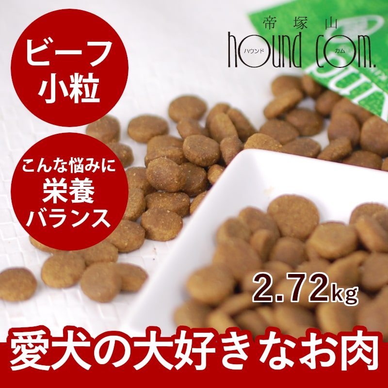 動物性たんぱく質はビーフのみ使用。小型犬も食べやすい小粒サイズ!