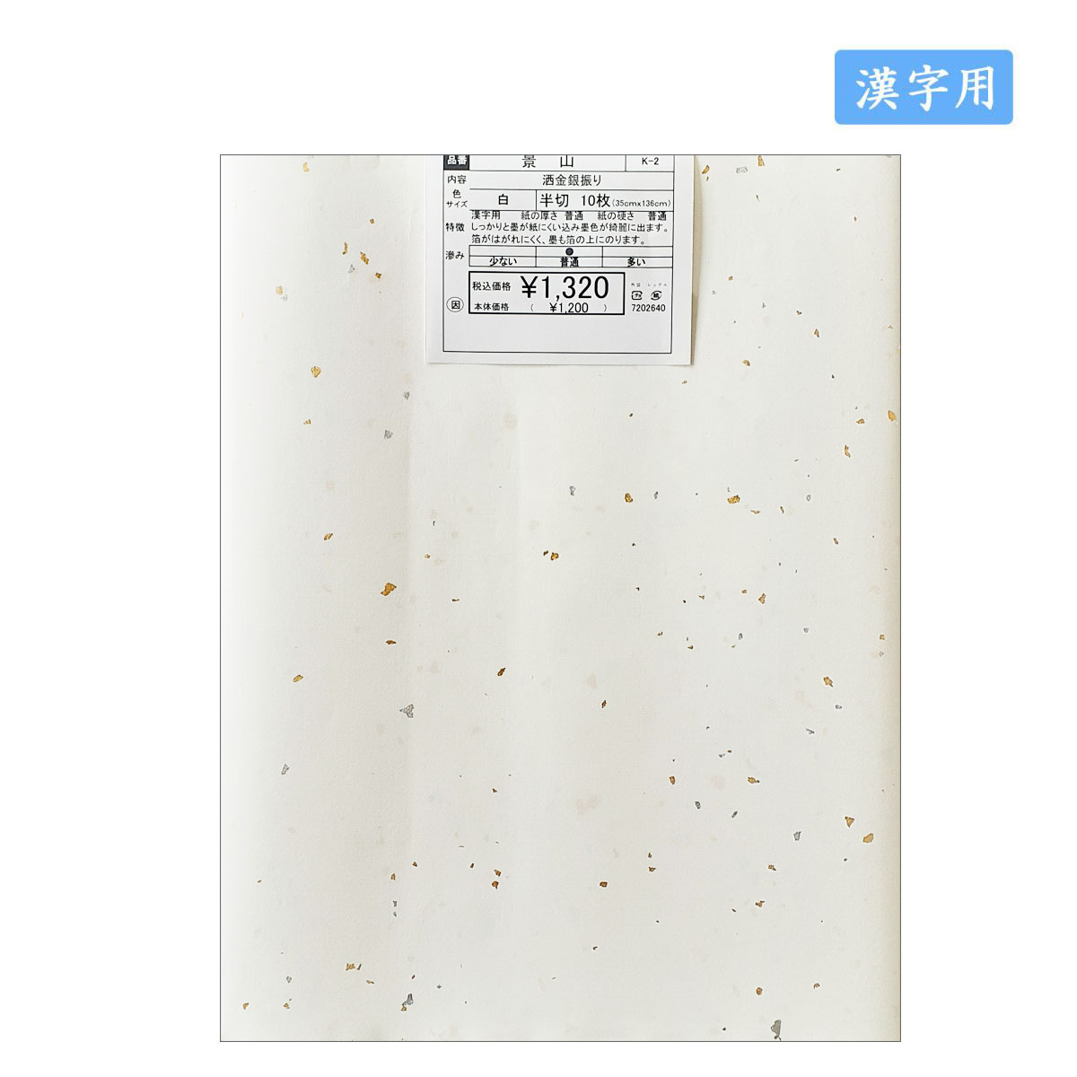 漢字用色画仙紙 景山 酒金銀振り 白 半切10枚入 漢字用加工紙 色条幅紙 加工紙