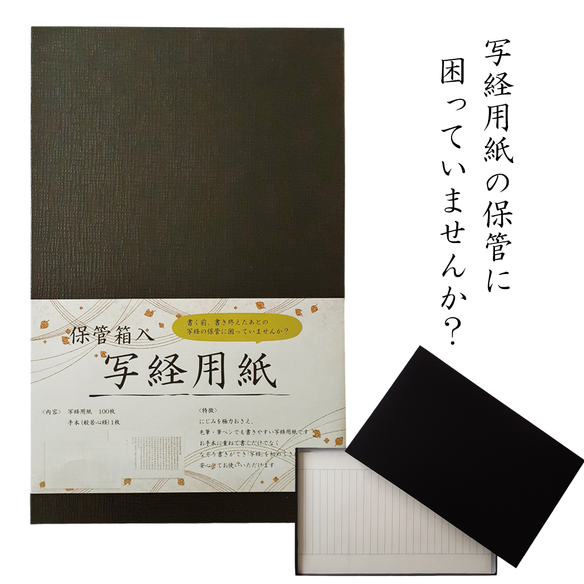 保管箱入写経用紙 100枚入 写経手本付 毎日写経 般若心経 写経保管 写経収納