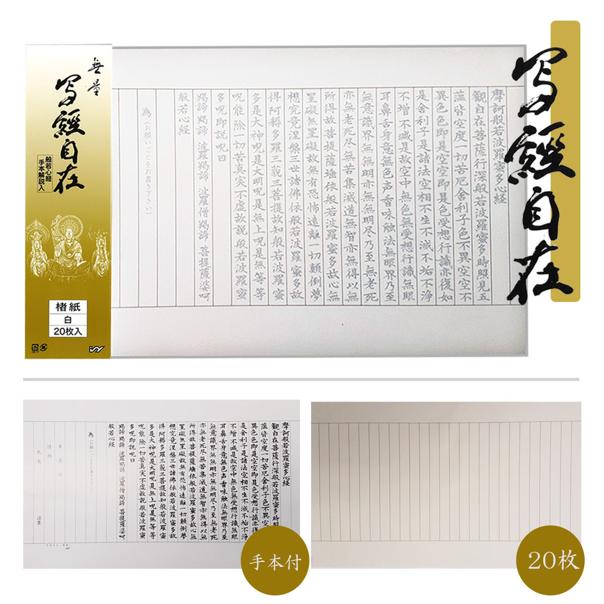 写経自在 無量 白 20枚入 手本入 般若心経 写経用紙
