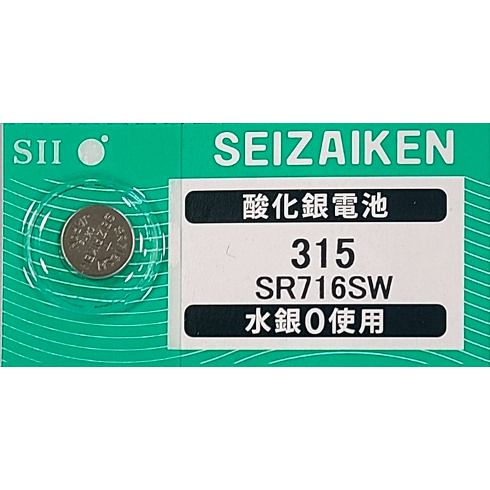 環境にやさしいHg0%無水銀電池 セイコーインスツル製 SR716SW×1個(バラ売り)。安心の日本製・日本語パッケージ。電池色シルバー。
