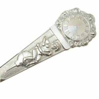 新しい生命の記憶をいつまでも...お誕生の記憶を刻むメモリアルスプーン。銀のスプーンを贈られた赤ちゃんは、将来きっと幸せをつかむと伝えられています。ゆりかごに揺られる赤ちゃんと、ちょっと成長されたお子様がブランコで遊ぶ様子が刻まれています。お祝いや特別な記念のお品としていかがでしょうか。サービスでお誕生の記録を刻印(機械彫り)させていただきます。注.生まれた時間はam. pm.表示になりますのでお忘れの無いようお書き添え下さい。・素材:SV925・サイズ:長さ約142mm・付属品:専用ケース、シルバーポリッシングクロス付き・通常納期約10日です。(年末20日以降のご注文は納期約3週間となります。)