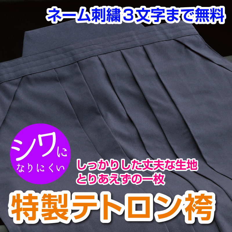 剣道袴 特製テトロン袴 中ヒダ縫製仕立 抗菌 軽量 速乾 希望者には刺繍ネーム無料 袴