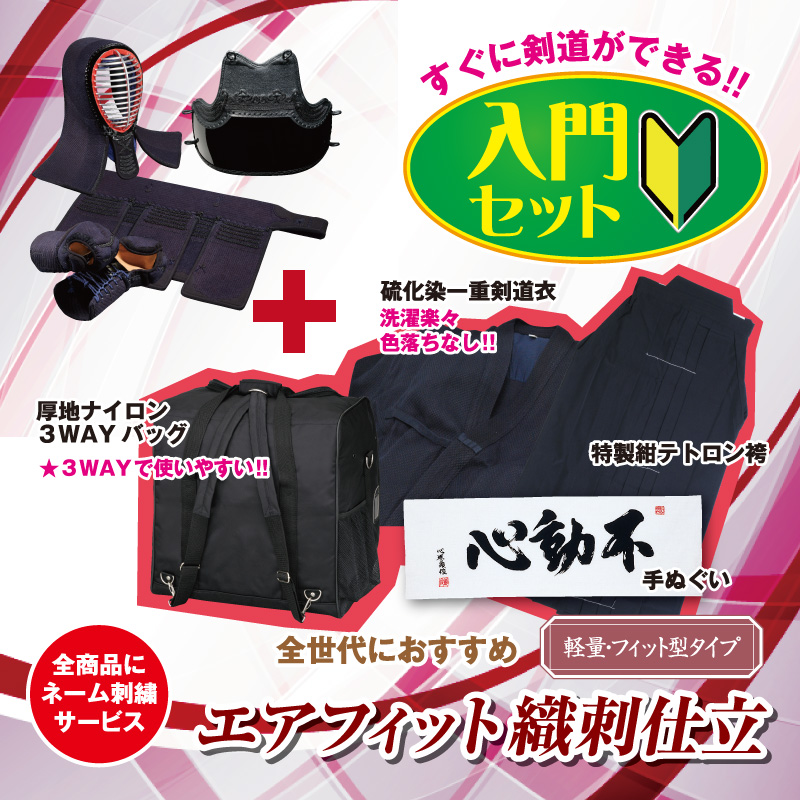 剣道入門セット 日武 エアフィット織刺仕立(軽量7.0m/m×5.0m/mミシン刺)
