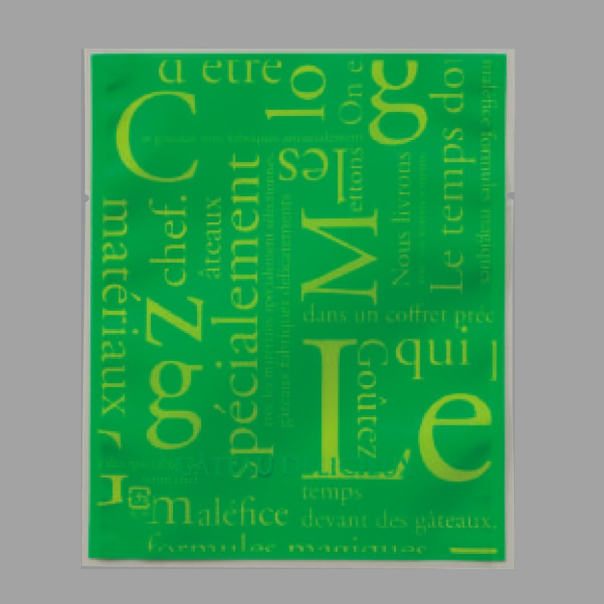 マチのない平袋タイプのガスバリア袋。脱酸素剤対応が可能です。表面は透明(ワンポイント印刷)・裏面はベタ印刷 *画像はイメージです